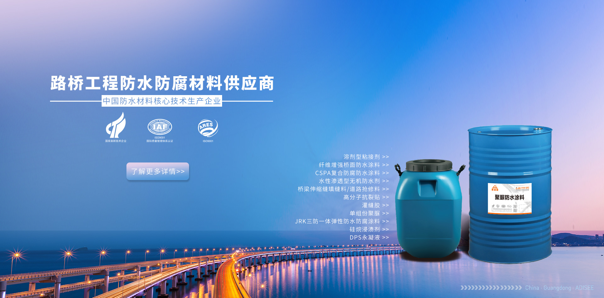 修繕補(bǔ)漏防水系列 廣東愛迪斯新型材料科技有限公司廣州分公司 隔音隔熱系列 路橋及防腐防水系列 家裝工程防水系列 修繕補(bǔ)漏防水系列專業(yè)承接路橋防水防腐工程施工及防水材料銷售,路橋防水工程遍布全國各地,多年的技術(shù)經(jīng)驗積累了一整套橋面防水病害處理方案,專業(yè)的路橋防水技術(shù),配套路橋防水施工設(shè)備,圓滿完成路橋防水施工任務(wù),用戶滿意度評價高,處橋梁防水行業(yè)技術(shù)領(lǐng)先水...